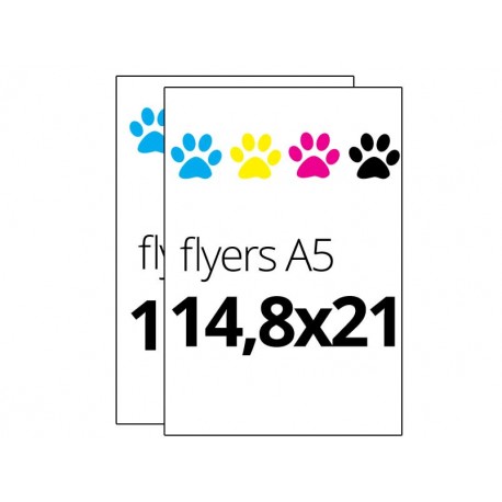 Impresión de flyers a todo color en tamaño A5 (14.8x21) en estucado mate o brillo de 135 grs,